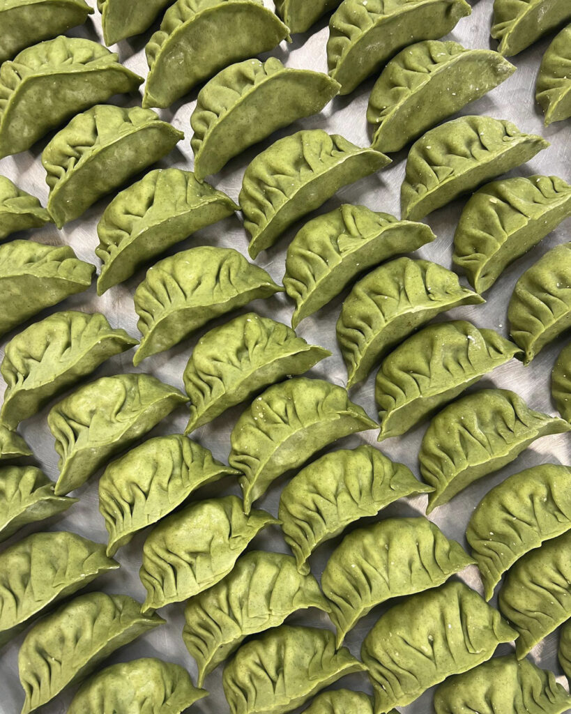 For the Veggie Lovers! I made you a Spinach Dumpling Wrap filled with more Spinach, Shiitake Mushrooms, Water Chestnuts, Mince Garlic with a Blend of Mixed Seasonings*